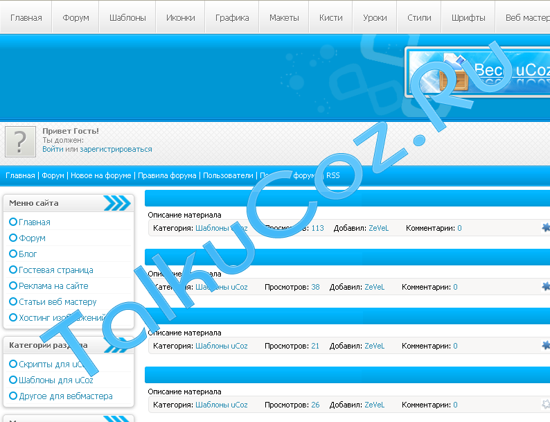 Так же качайте на нашем Воронежском портале, только свежие шаблоны под новый ucoz. На нашем форуме вы так же получите техническую поддержку бесплатно, по установки и настройки шаблонов и скриптов.